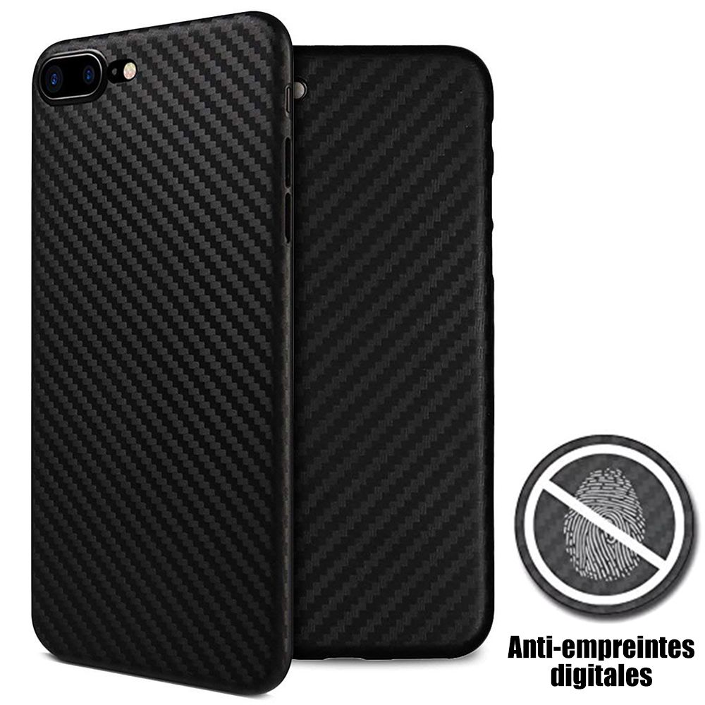 iPhone 8 Plus Coque Silicone Antichoc Motif Fibre de Carbone
