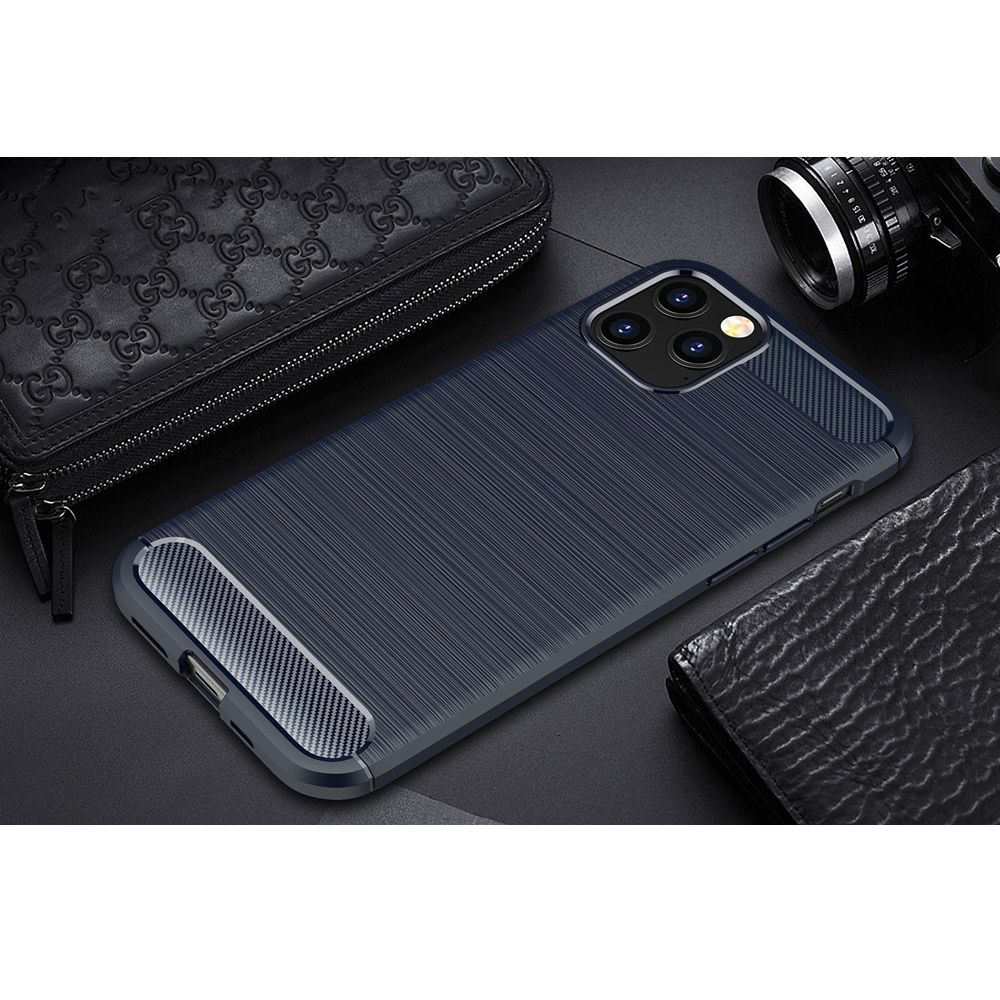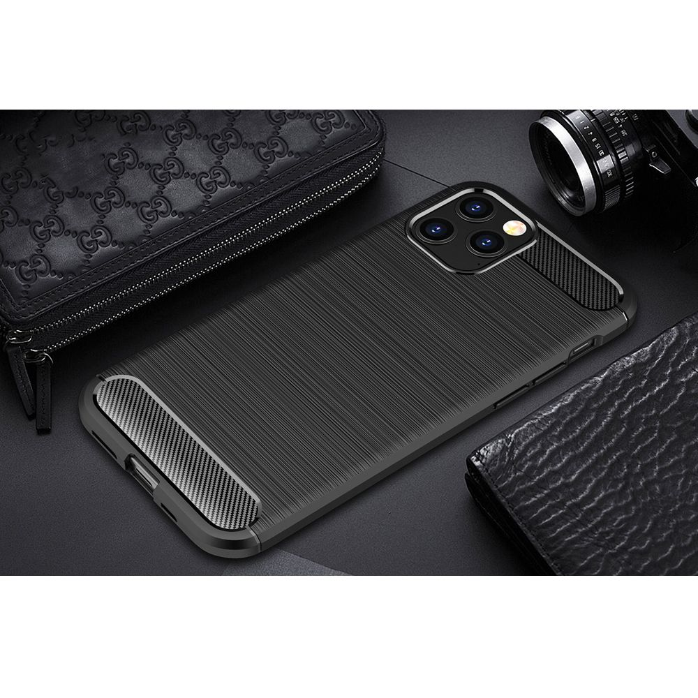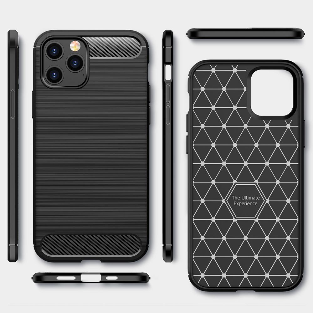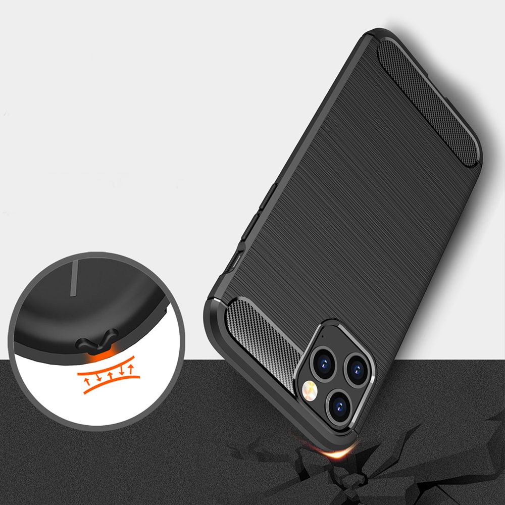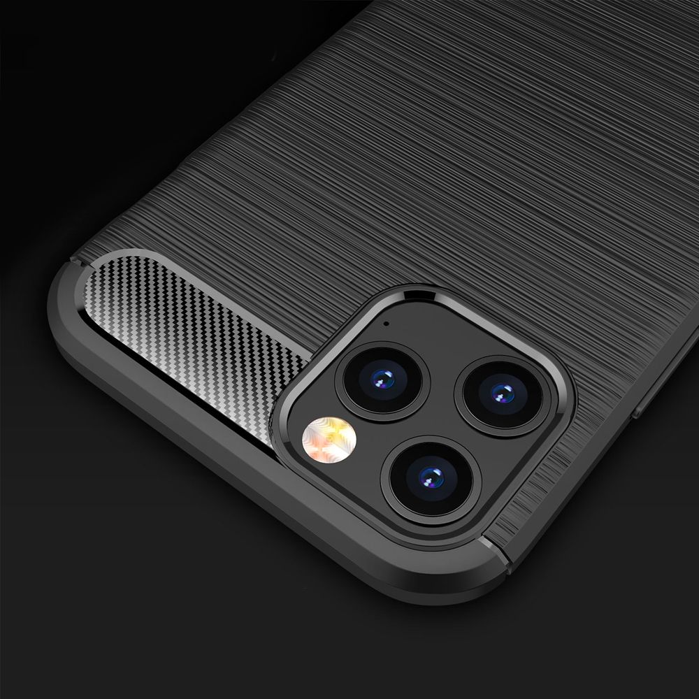 Coque silicone ultra slim avec motif de fibre de carbone pour iPhone 12 mini. Design élégant, très durable. Anti-rayures, anti-choc, anti-dérapante, anti-poussière et huile.