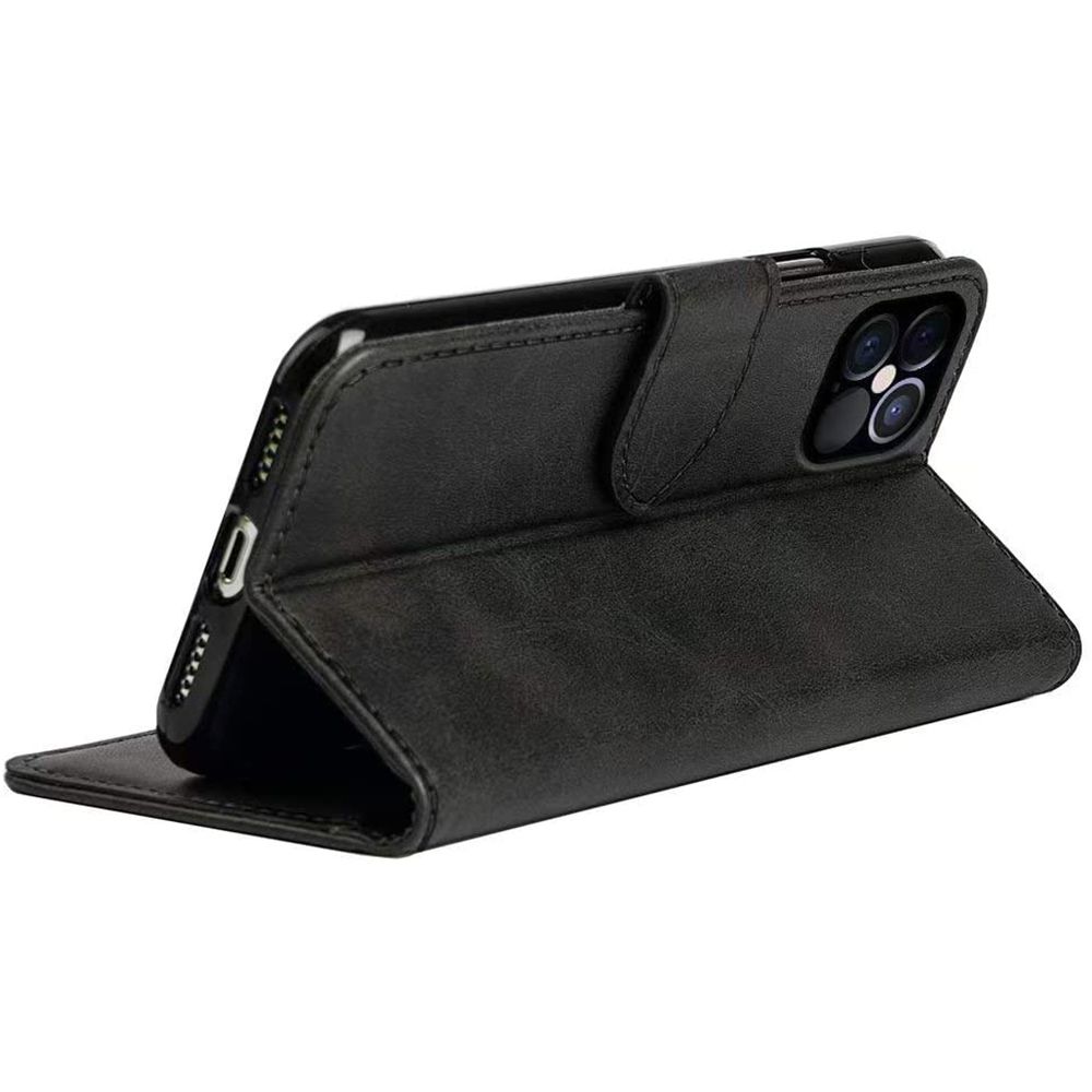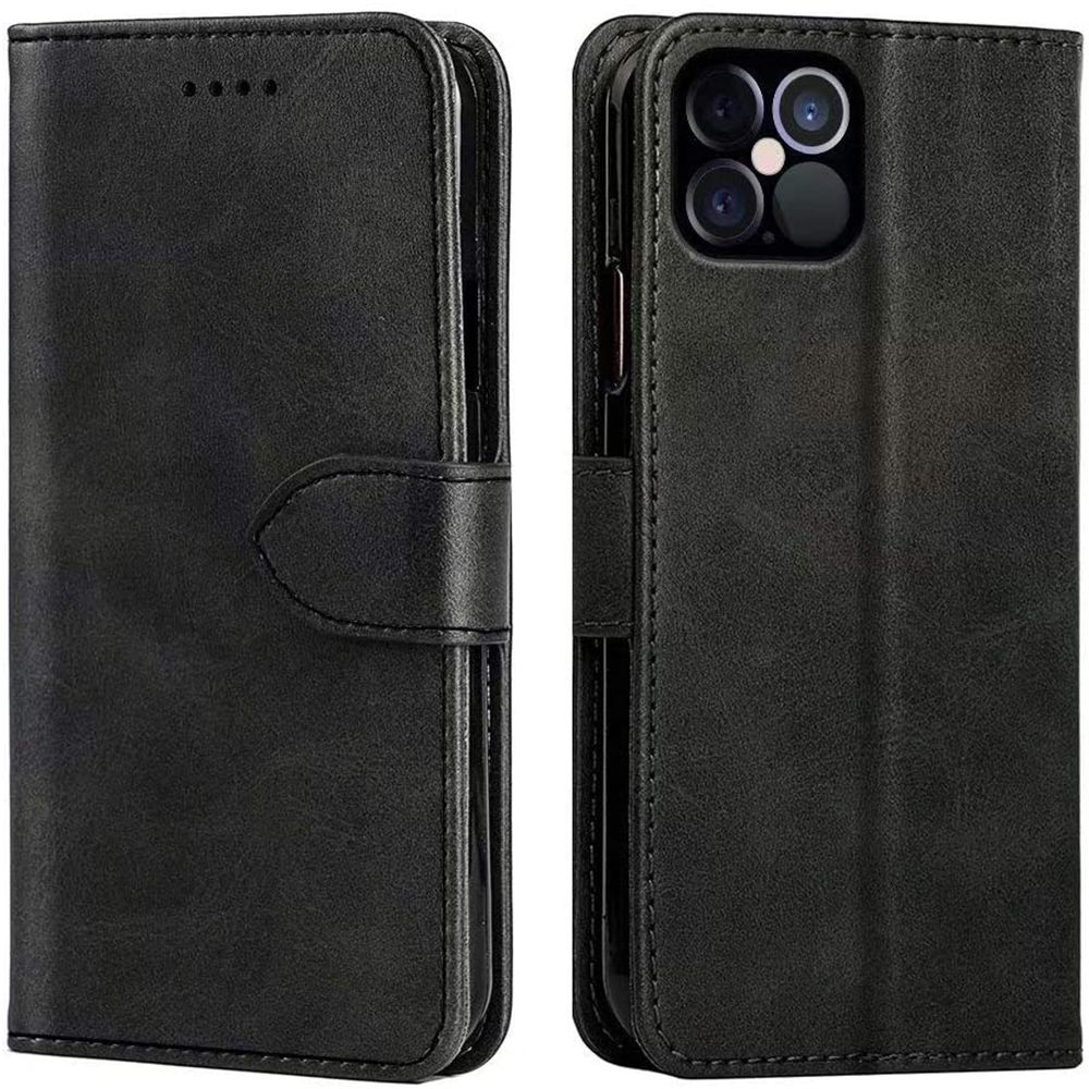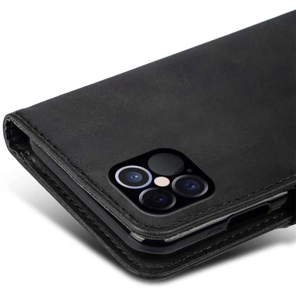 Coque rabat portefeuille à cuir synthétique pour iPhone 12 Pro Max. Matériau de Haute Qualité. Cet étui dispose d’un rabat résistant et possède des emplacements pour ranger des cartes et billets. Fonction Support: regardez les vidéos avec un angle de vue idéal tout en gardant les mains libres.