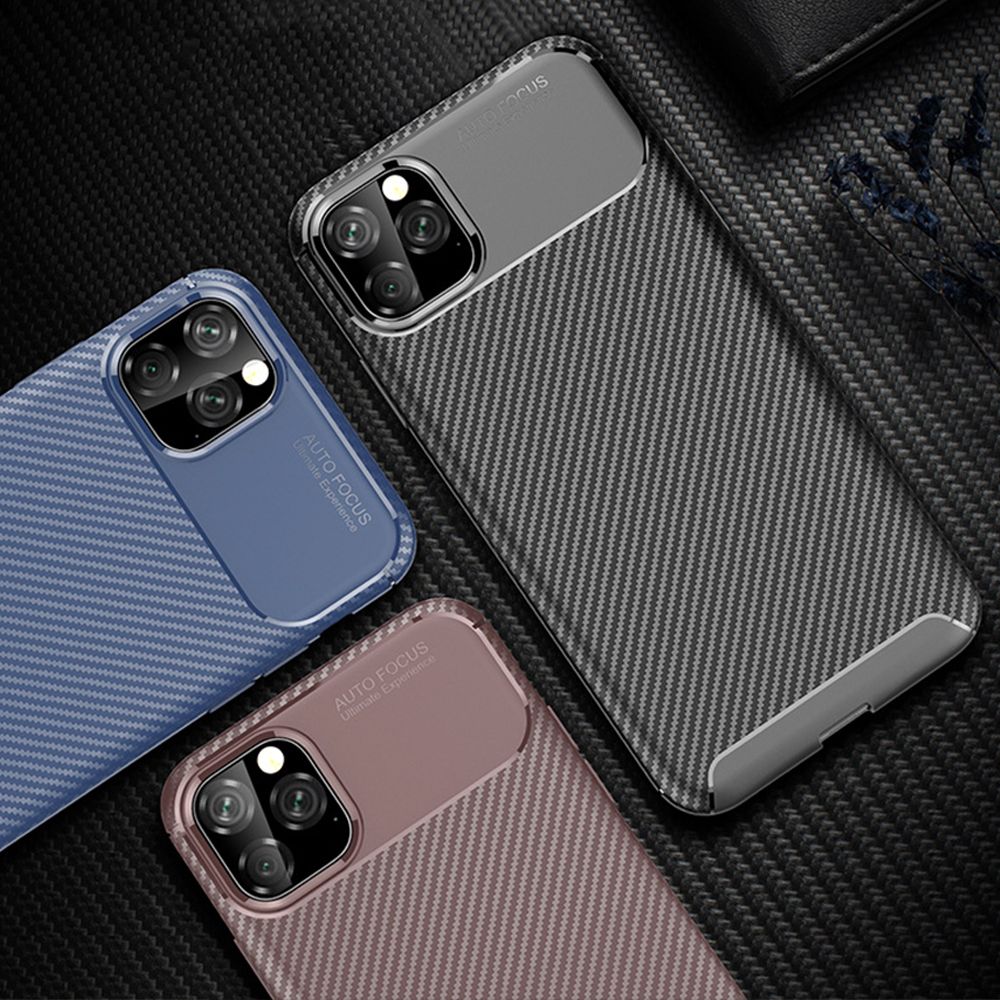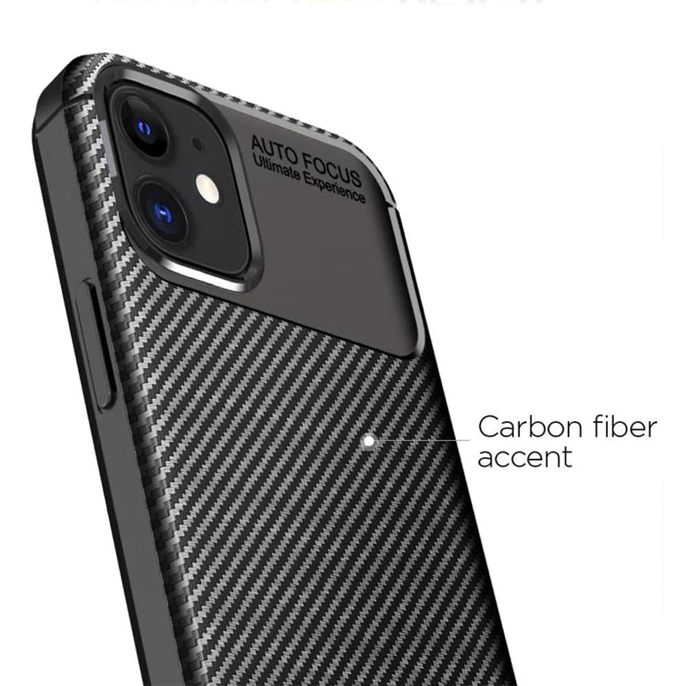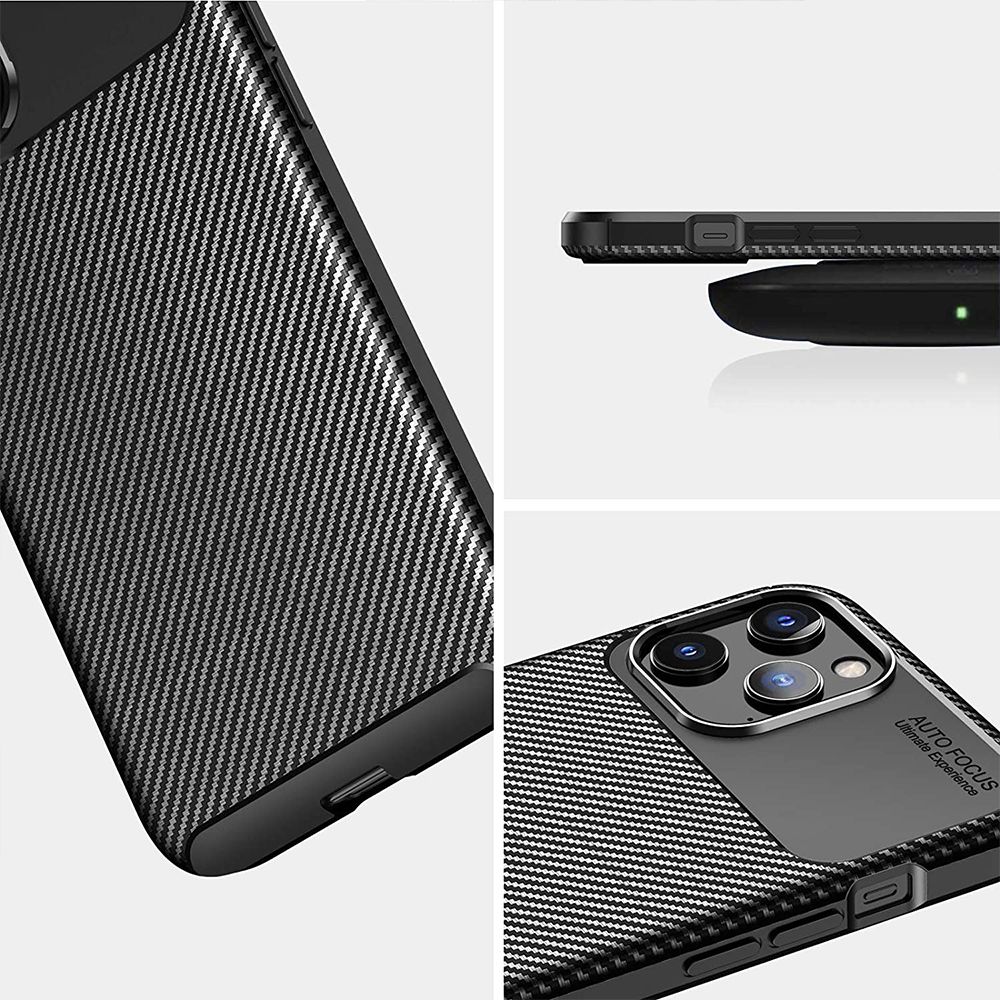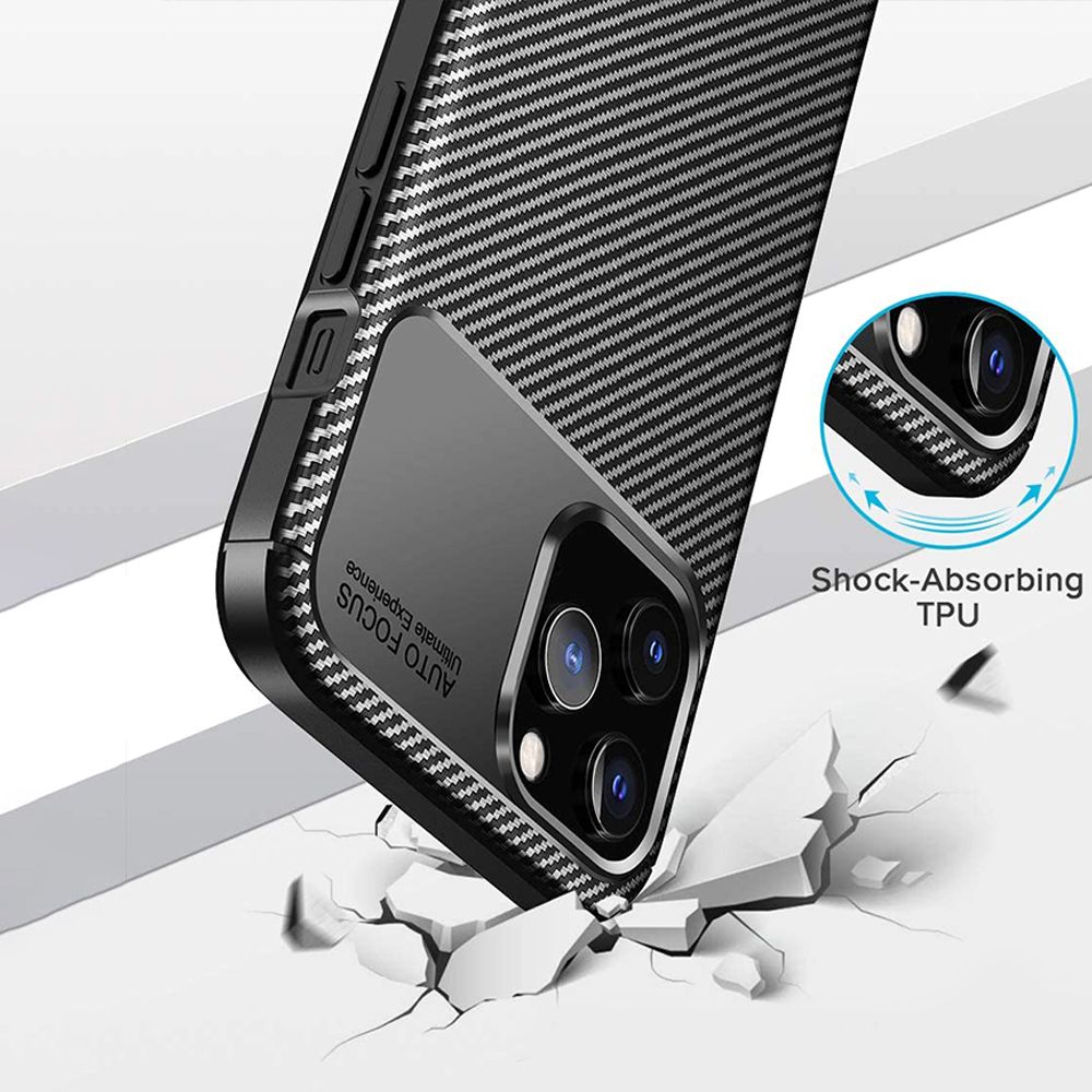 Coque silicone ultra slim avec motif de fibre de carbone pour iPhone 12 Pro Max. Design élégant, très durable. Anti-rayures, anti-choc, anti-dérapante, anti-poussière et huile. Couleur: Noir.