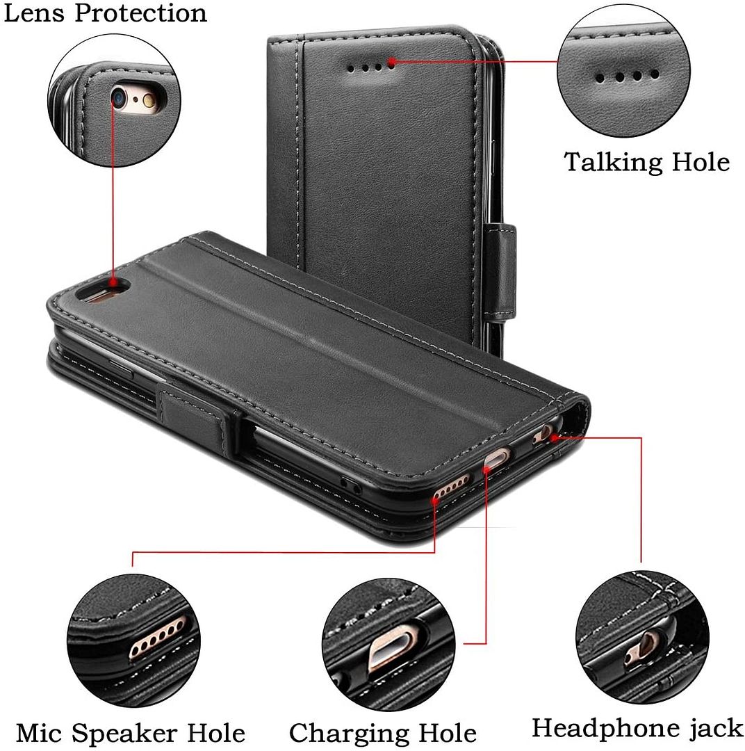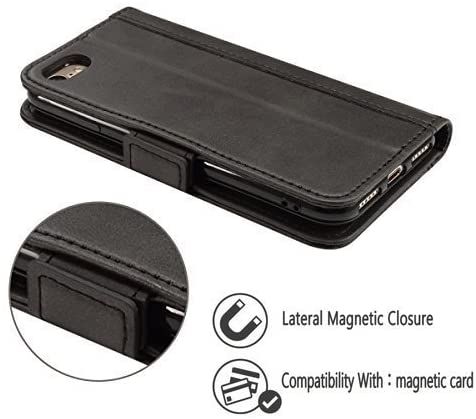 Coque rabat portefeuille à cuir synthétique pour iPhone 6/6s. Matériau de Haute Qualité. Cet étui dispose d’un rabat résistant et possède des emplacements pour ranger des cartes et billets. Fonction Support: regardez les vidéos avec un angle de vue idéal tout en gardant les mains libres.