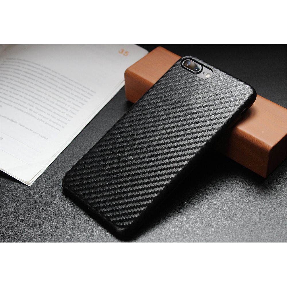 Coque silicone slim avec motif de fibre de carbone pour iPhone 7 Plus. Design élégant, très durable. Anti-rayures, anti-choc, anti-dérapante, anti-poussière et huile.