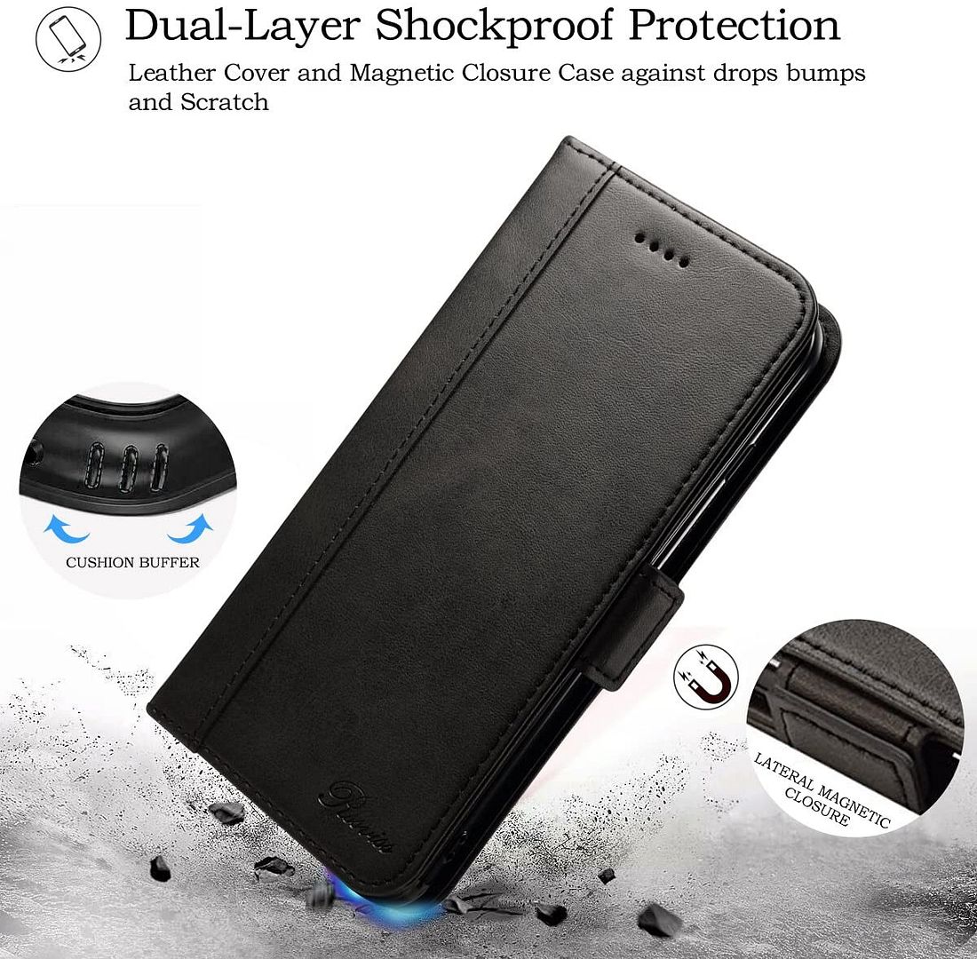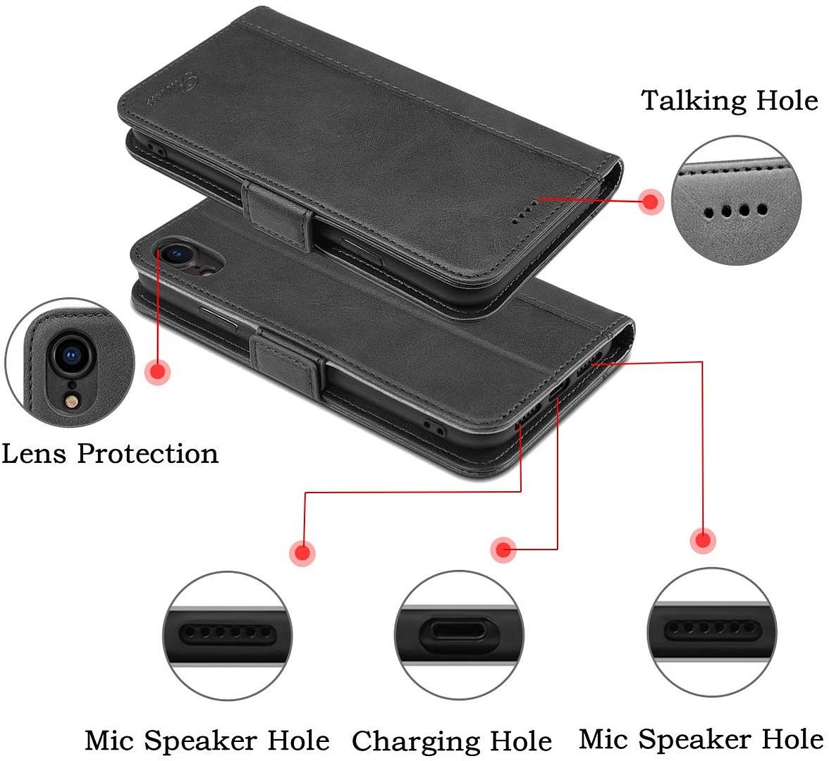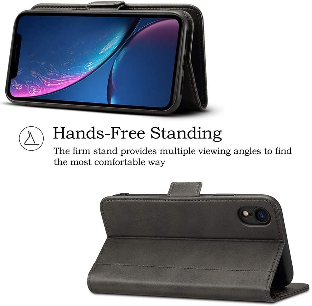 Coque rabat portefeuille à cuir synthétique pour iPhone XS Max. Matériau de Haute Qualité. Cet étui dispose d’un rabat résistant et possède des emplacements pour ranger des cartes et billets. Fonction Support: regardez les vidéos avec un angle de vue idéal tout en gardant les mains libres.